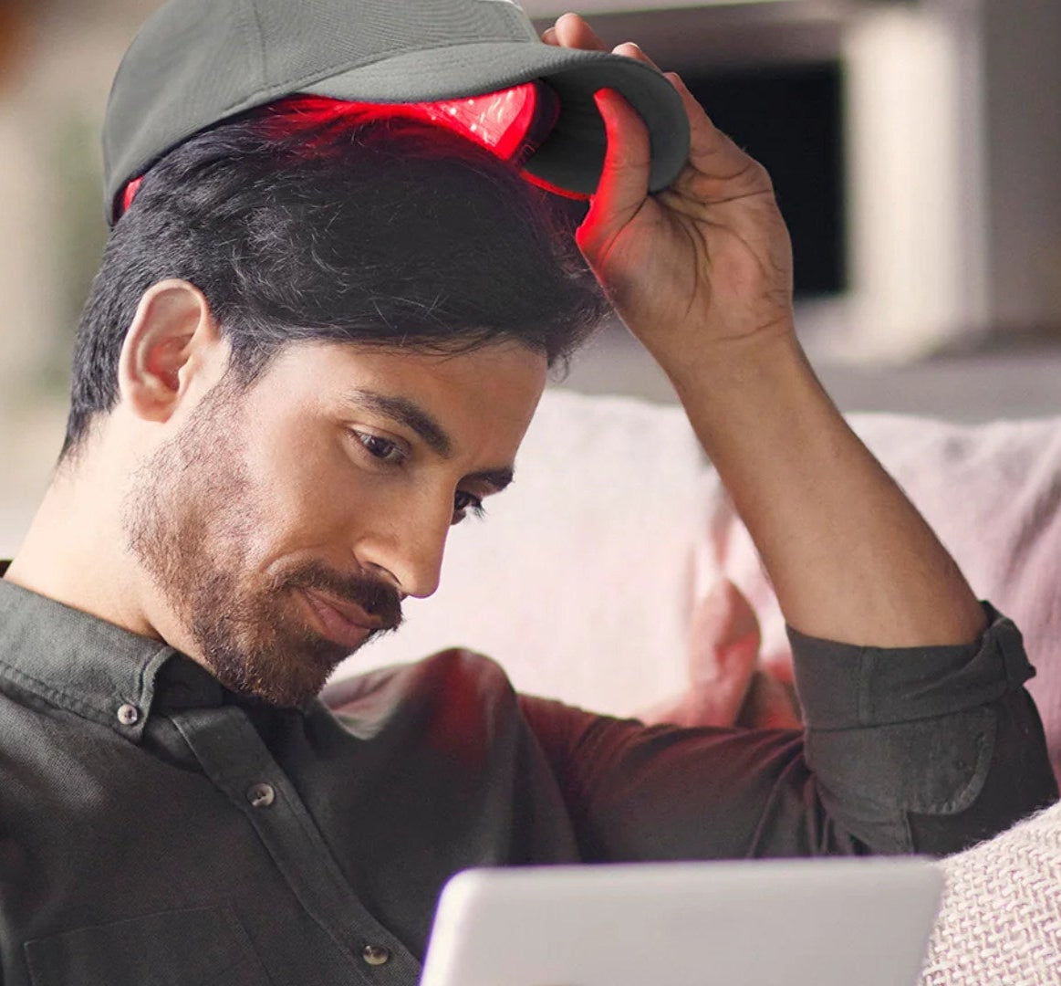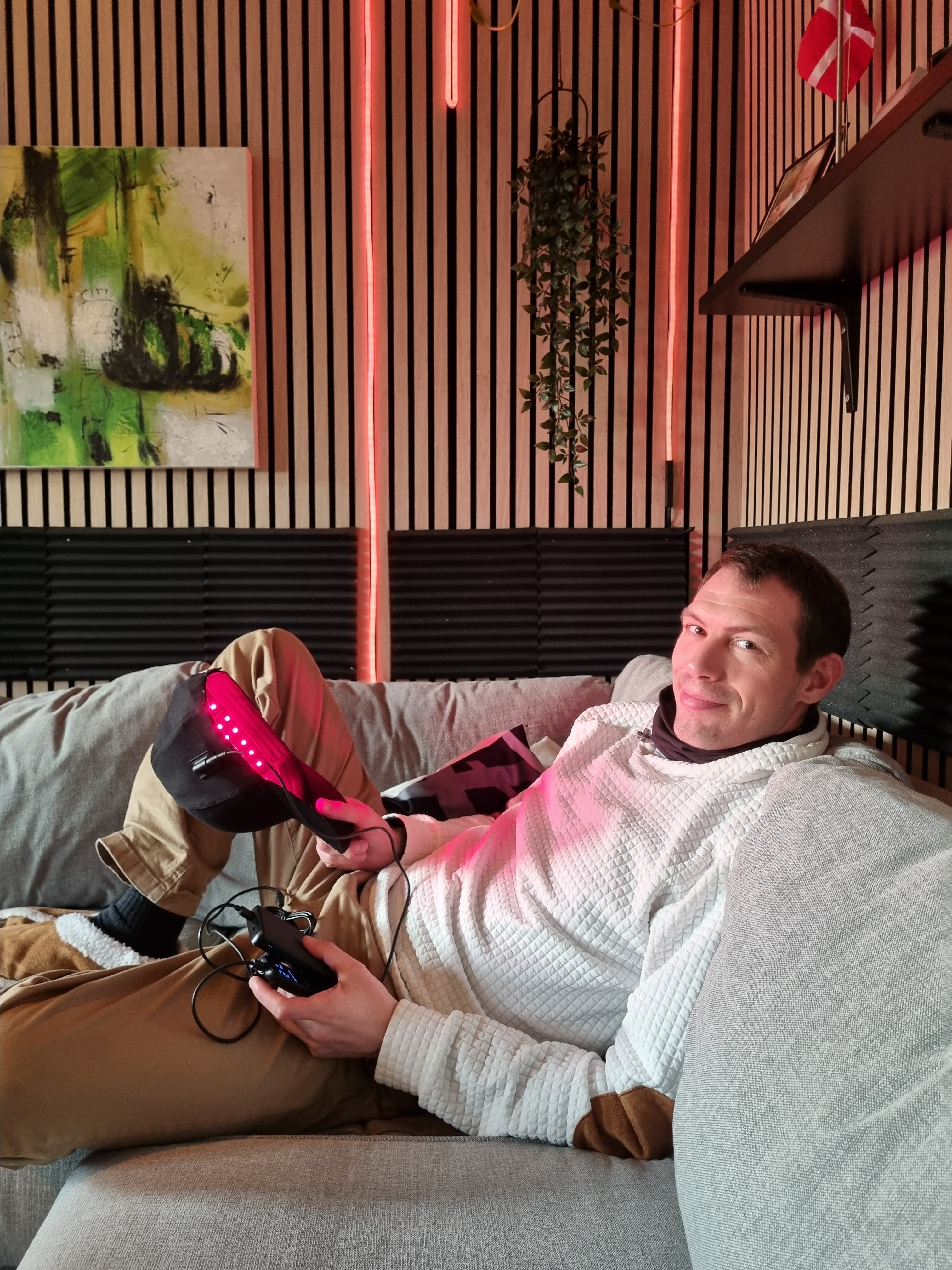 Cappen kombinerer 660 nm rødt lys og 850 nm nær-infrarødt lys i et målrettet lysspektrum, inspireret af professionelle lysterapi-metoder – samlet i én diskret og brugervenlig løsning til hjemmebrug.