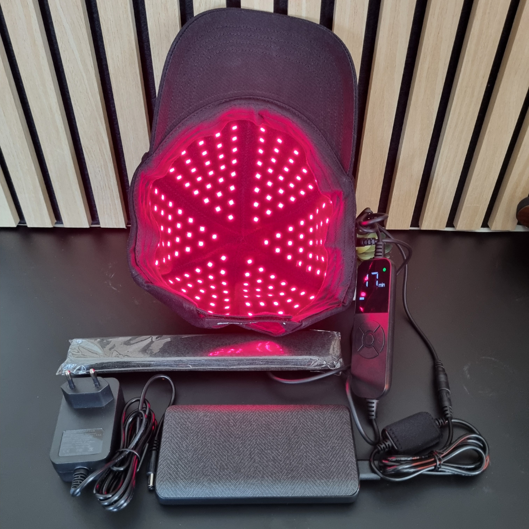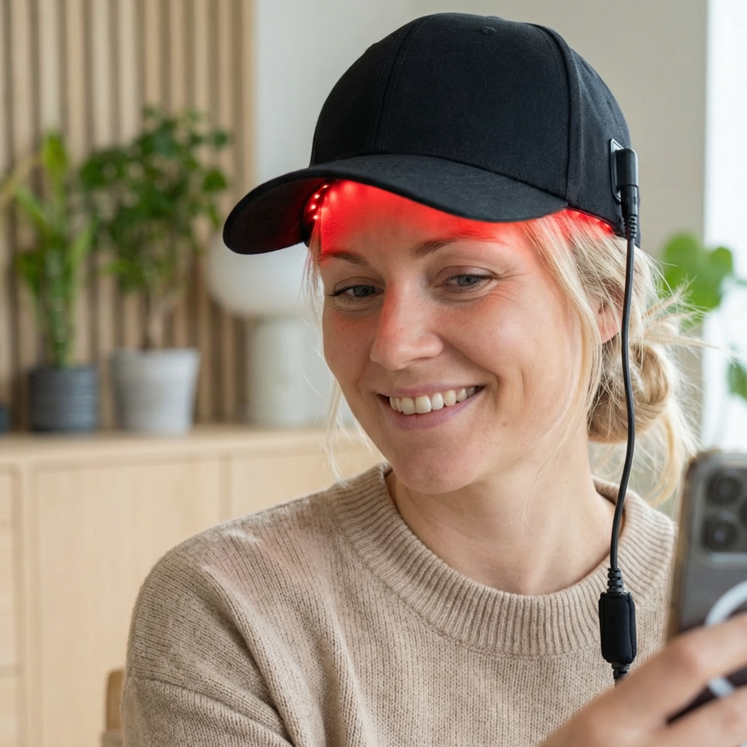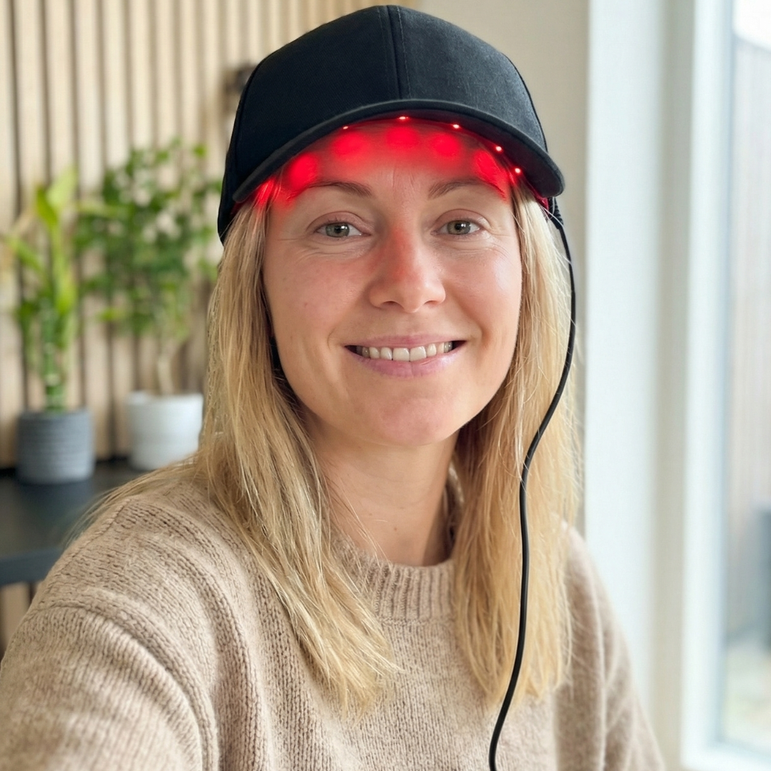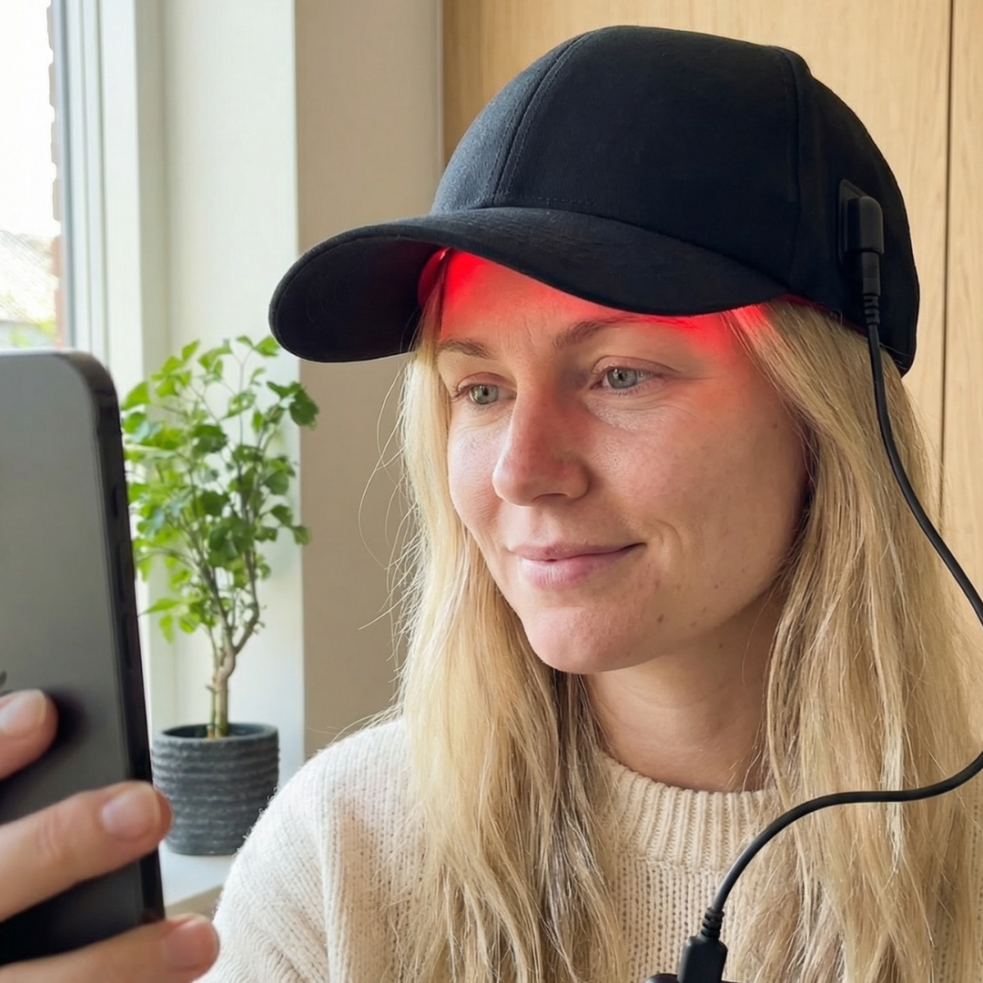 Hvad er en laser cap? En laser cap er en bærbar hovedbeklædning med indbyggede dioder, der udsender rødt og nær-infrarødt lys. Behandlingen kaldes Low-Level Laser Therapy (LLLT) eller photobiomodul...