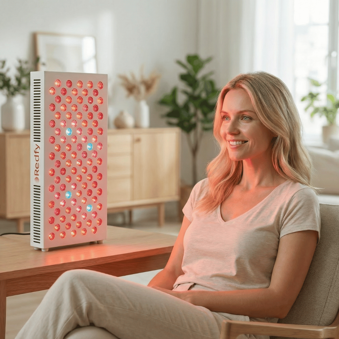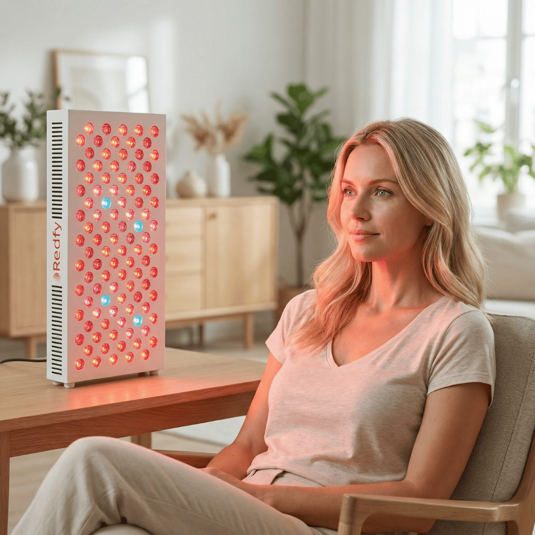 RT500 PRO kombinerer synligt rødt lys, nær-infrarødt lys og blå bølgelængder i ét samlet panel. Kombinationen anvendes bredt i moderne lysterapi-rutiner, hvor både overflade og dybere væv ønskes belyst.